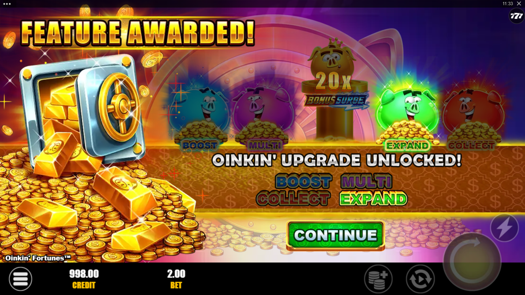 Want to cut the line and cash in faster? Use Feature Buy to instantly trigger Link&Win™ with all 4 Oinkin’ Upgrades in play.